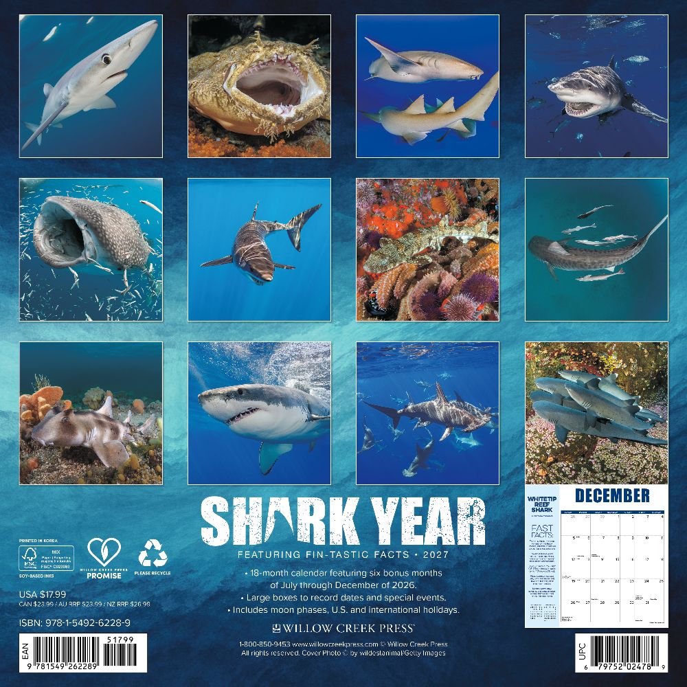 ROLLING IN THE DEEP – Ignite your wonder and appreciation for the ocean's apex predators with the 2027 Shark Year 12" x 12" Wall Calendar. Fin-tastic facts...