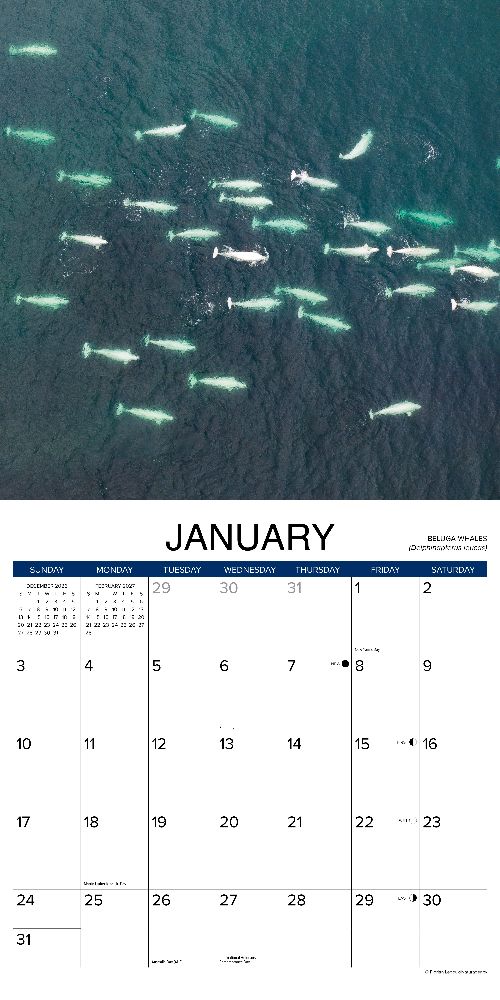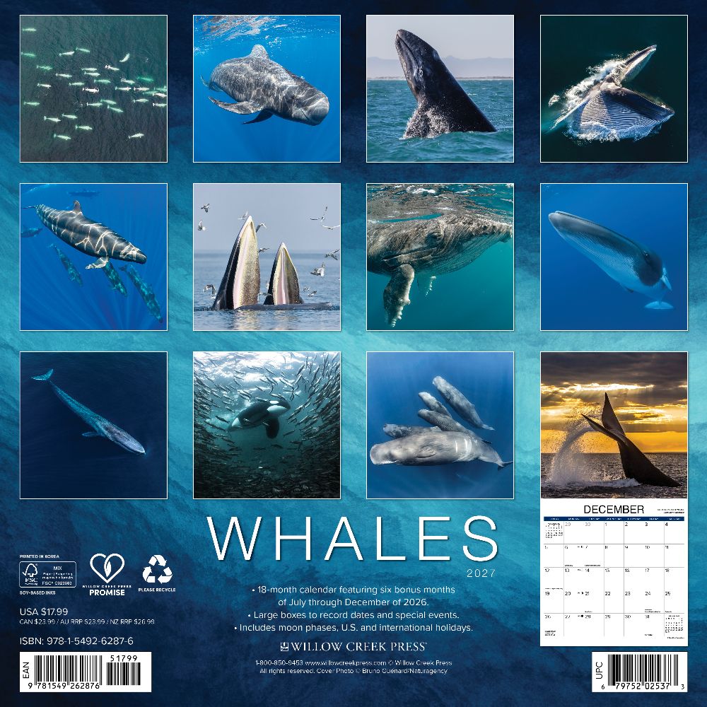 WHALE HELLO THERE – Take a deep dive into the ocean's depths to explore the grace and power of the world's largest animals in the 2027 Whales 12" x 12" Wall Calendar. From gentle giants like humpback and blue whales to playful pods of orcas and long-lived bowhead whales, this calendar offers a glimpse into the fascinating lives of these incredible marine creatures. Let their beauty, intelligence, and remarkable adaptations inspire the year ahead. PLAN IN STYLE – Stay organized with our 12” x 12” monthly wall calendars, the perfect fit for any home or modern office. Six bonus months from July to December 2026 provide a smooth transition into the new year, while large monthly grids from January through December 2027 offer ample room for jotting notes and planning. PICTURE-PERFECT QUALITY – Printed with soy-based inks on high-quality FSC-certified paper, our large format 12” x 12” wall calendars offer smooth writing, crisp readability, and vibrant imagery, making them a welcome accent to any space. EFFORTLESS SCHEDULING – Enjoy ample space to note events, track appointments, and easily organize activities. Manage busy schedules at-a-glance with clearly noted moon phases (CST), holidays, and observances.