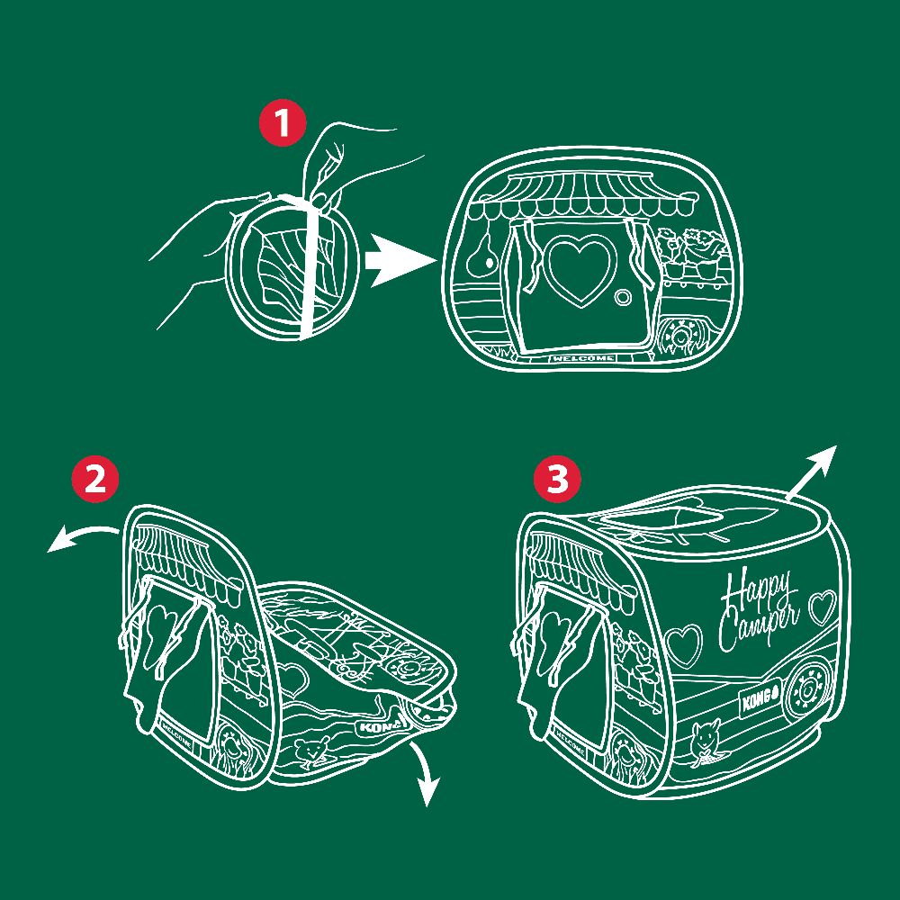Home is where the heart is, and when the cat who has your heart is playing or napping in their KONG Play Spaces Camper, they’re home for the holidays! Our festive camper serves as the perfect hideout for playing, napping, and surprise attacks on the legs of unsuspecting passersby. It’s also full of holiday cheer—and KONG Premium North American Catnip stuffed into an attached toy present. These play spaces provide den-like areas for cats to feel safe and comfortable inside your home. Plus, it conveniently folds down for easy storage when the season’s over. Whether they’ve been naughty, nice, or a little of both, the KONG Play Spaces Camper guarantees a holly-jolly good time for every cat on your list.