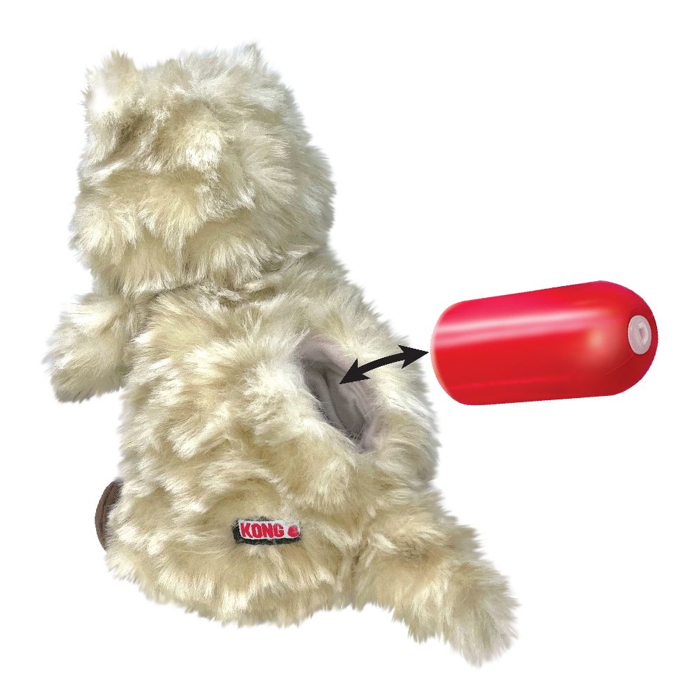 The answer to the question, Fuzzy Wuzzee wasn't fuzzy, was he? KONG Holiday Comfort Wuzzeez are, in fact, very fuzzy! This soft and fuzzy capybara is perfect for both playtime and naptime. Especially because of a removable, low-pitched squeaker—that makes it easy to switch between rambunctious play and comforting cuddles. If the lively squeaks start to drive you mad, it's easy to put a pause on the noise, just for a little bit. These friendly and loyal holiday plush toys stand at attention, waiting to be picked up and played with. Plus, they feature lined material on the back of the plush for added resilience, helping them withstand light chewing and games of indoor fetch.