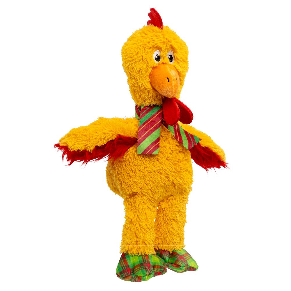 KONG Knots Chicken is ready for the holidays in its adorable scarf and socks! This super-soft plush toy is designed for light chewing, featuring an internal knotted rope and a reinforced layer of material that caters to dogs' playful instincts, such as thrashing, wrestling, and tugging. This charming holiday toy may be a chicken, but it's no chicken when it comes to playtime. Squeakers keeps play sessions going, but this chicken is the perfect snuggle buddy when naptime comes. It also makes a fantastic seasonal gift for the special dogs in your life, ensuring they can join in on the holiday fun!