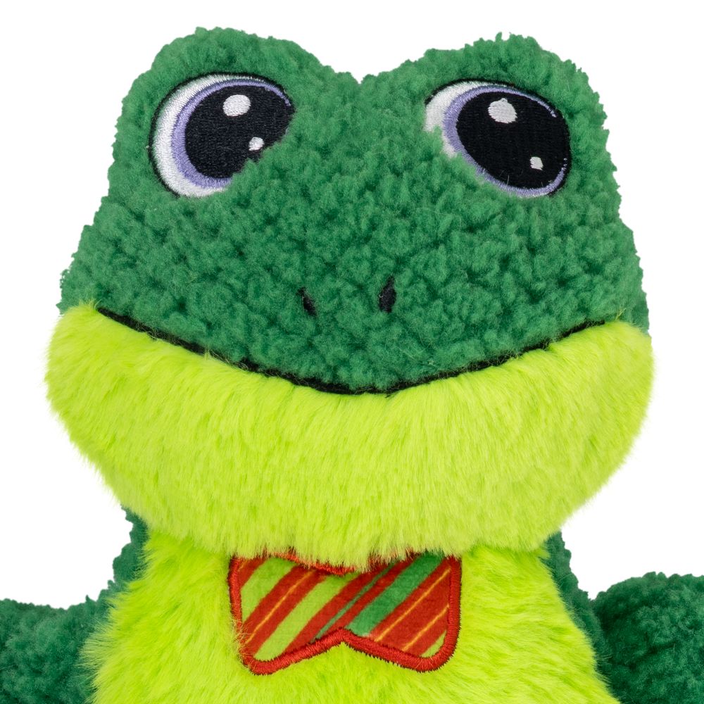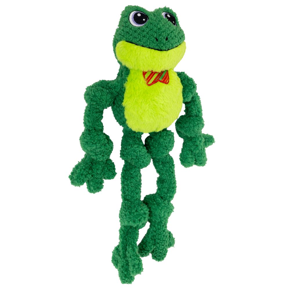 KONG Knots Bowtie Frog longs to be played with, and a loving shake during the holiday season would make its knotted heart full! Built to endure pulling and light chewing, this Holiday Frog features an internal knotted rope and 18-inch body that cater to dogs' playful instincts to thrash, tug, and wrestle. Varied textures and a squeaker keep play sessions going, but this plush pal is the perfect snuggle buddy when naptime comes. It also makes a fantastic seasonal gift for the special dogs in your life, ensuring they can join in on the holiday fun!