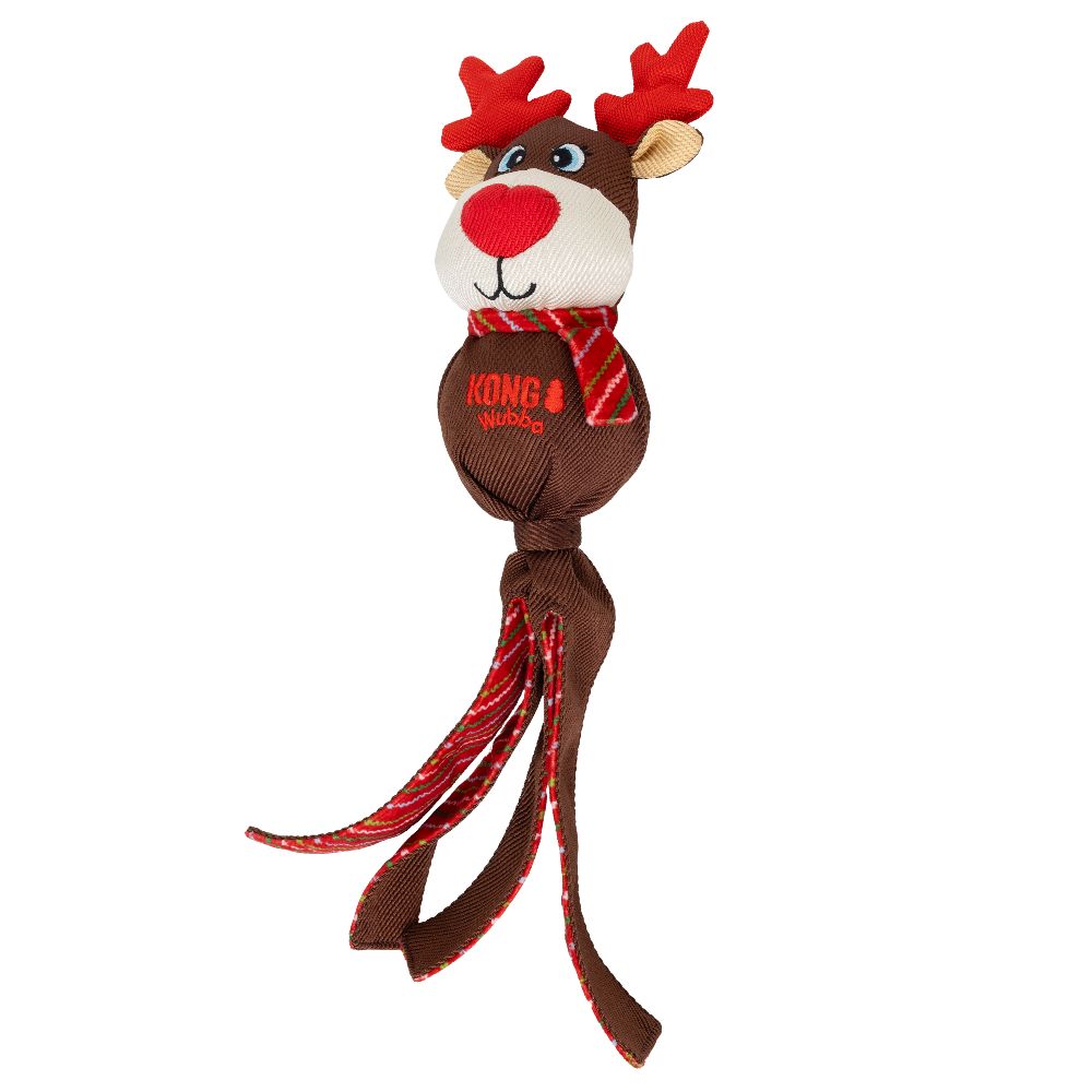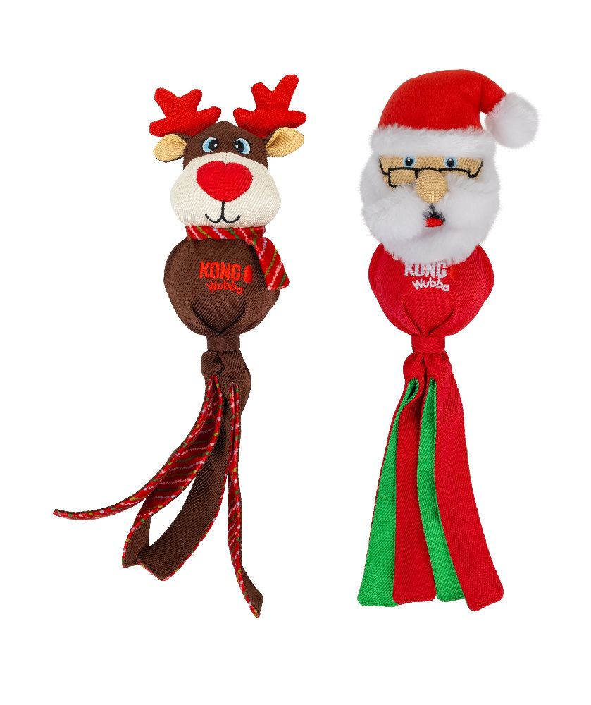 KONG Holiday Wubba Characters feature long, floppy tails that spark dogs' natural instinct to shake, adding fun and excitement to tugging sessions! The long tails also make these toys easy to pick up, throw, and fetch. Our Holiday Wubbas are made with reinforced fabric and stitching for added durability, yet they're still gentle on dogs' teeth. They are perfect for both interactive and independent play—complete with squeakers that fill your pup with the holiday spirit! These delightful seasonal characters make fantastic gifts, allowing your dog to join in on the holiday fun.