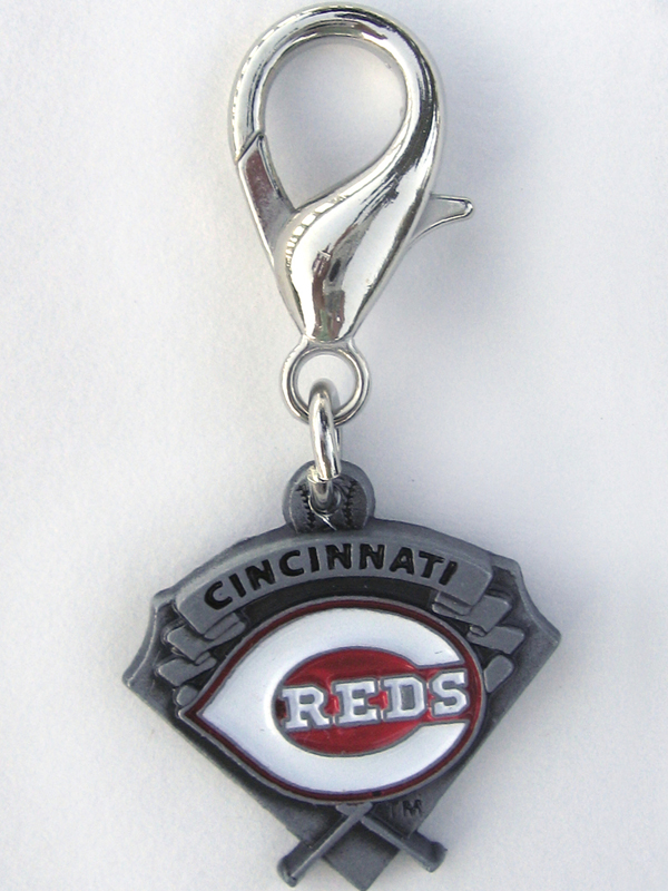 Officially Licensed MLB Team Charms Perfect gift for four-legged fans of the Cincinnati Reds! These jewelry-quality charms are crafted from antiqued, lead-safe pewter, and are hand- enameled. Made in the USA.