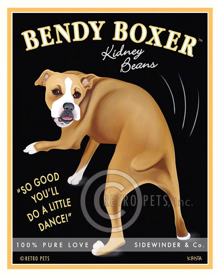 Boxer - Bendy Boxer Kidney Beans GREETING CARD - 3 Cards