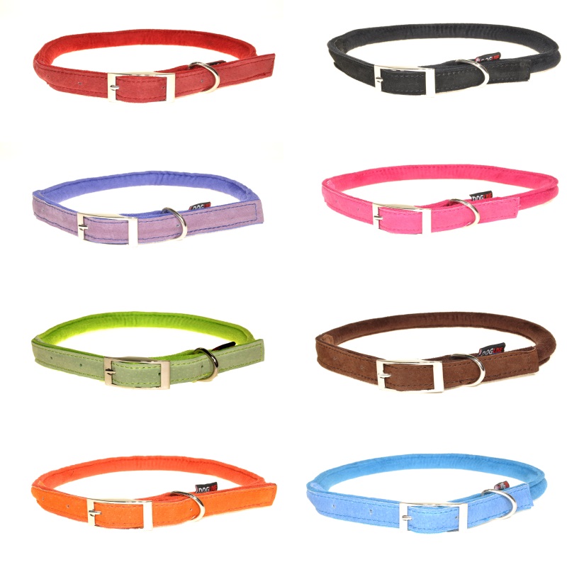 Strong and durable but soft and padded rolled microfiber collars. Lightweight and comfortable