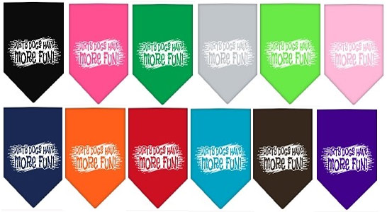 Small is a 14" x 14" square that is easily folded in half to create the triangle look needed. Roll the bandana until the desired length down the back has been achieved, then tie around the dog's neck.
