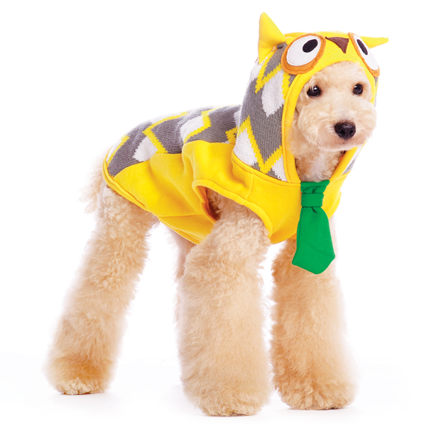 Want a wise look? Pullover design, detailed owl hood, zigzag pattern, leash hole, and smart snazzy tie.ETA 8/20/13