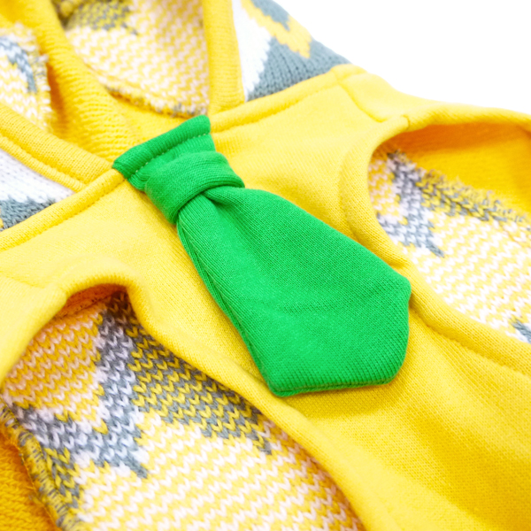 Looking for a wise look? Pullover design, detailed owl hood, zigzag pattern, leash hole, and smart snazzy tie.