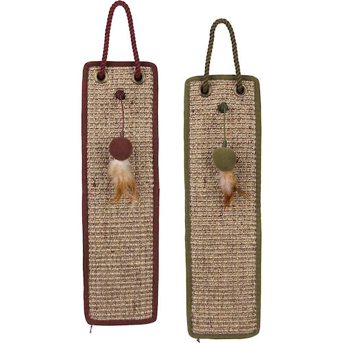 Sisal and carpet provides resistance and variety for a satisfying scratch session; catnip toy entices cat