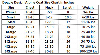 Sizes: XS thru 5XL (4 thru 120 Lbs.) Can Possibly go up to 150 Lbs., depending on the chest size.